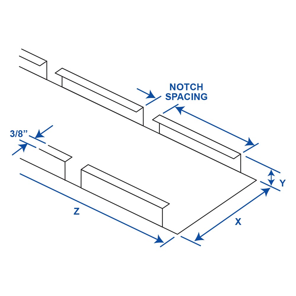 The Deluxe Notch Stud is similar to Notch Track, our Notched Stud is used for floor joist blocking or horizontal backing in walls to allow support mounting various items to the walls. The major difference is Notched Stud features additional structural support to provide a strong mounting surface.