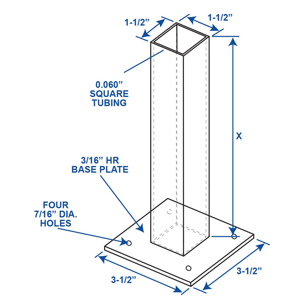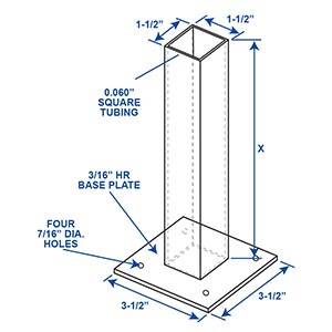 - 3 1/2" Square Base (3/16" HR Base Plate)