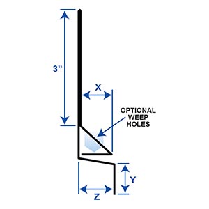 The Deluxe 3 Stucco Screed Flashing combines a stucco screed and head flashing into one uniformed piece. Weep screed allows moisture to escape and travel over top of flashing. The Deluxe 3 Stucco Screed Flashing provides ideal water management at window head, floor line and transition to dissimilar materials. Available with and without weep holes.