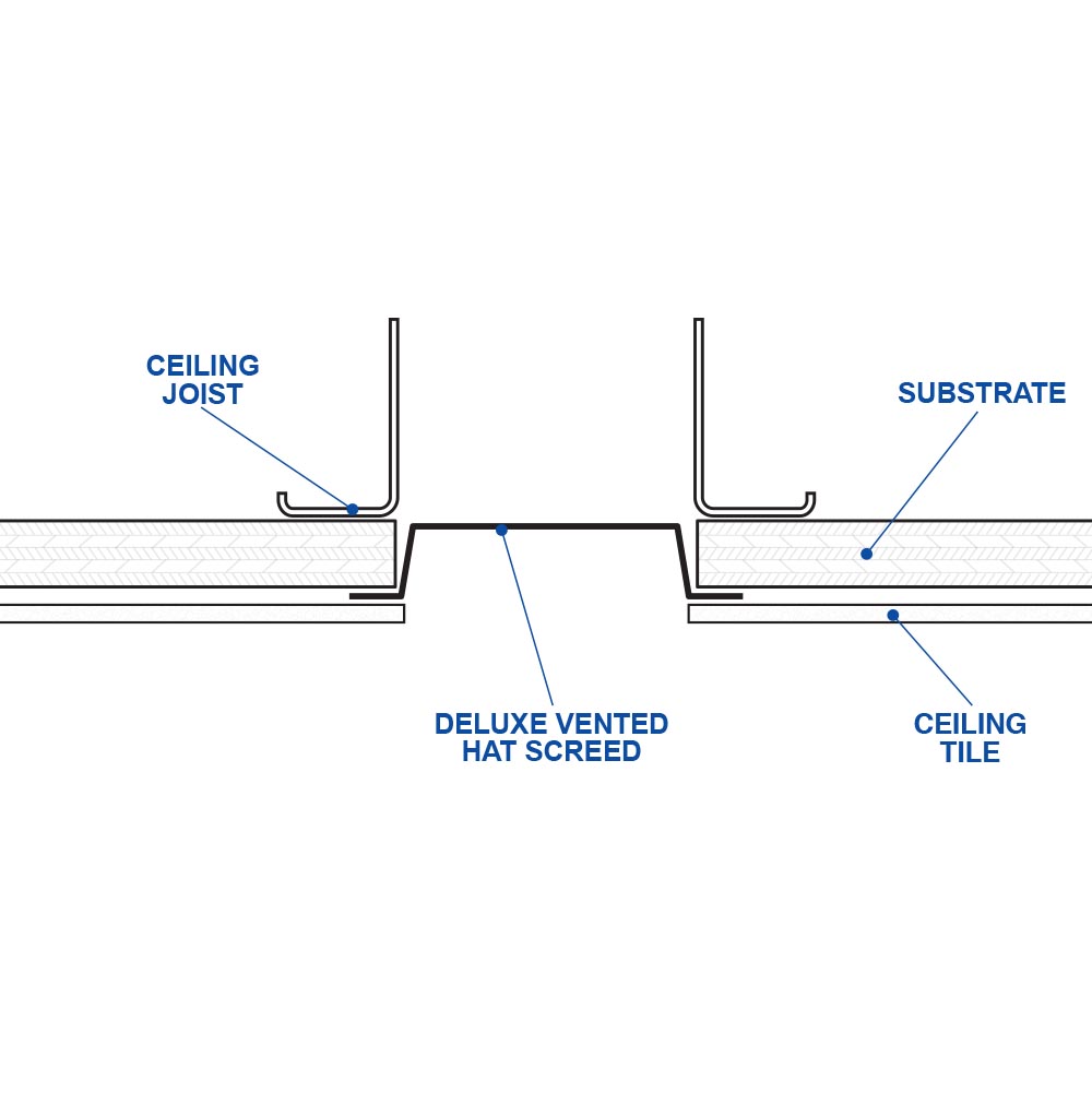 The Deluxe Vented Hat Screed offers ventilation while providing a finished, flush reveal look. A decorative flush reveal for use in a soffit condition.