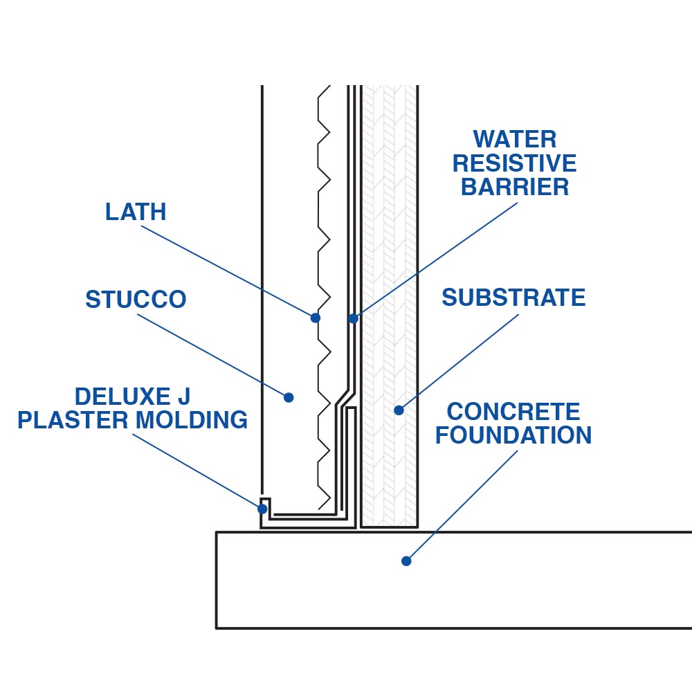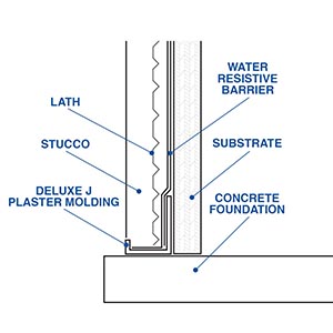 The Deluxe J Plaster Molding ia a plaster stop or casing bead for conventional 3-coat stucco used in a variety of conditions. It gives a visually pleasing finished look at all plaster terminations.