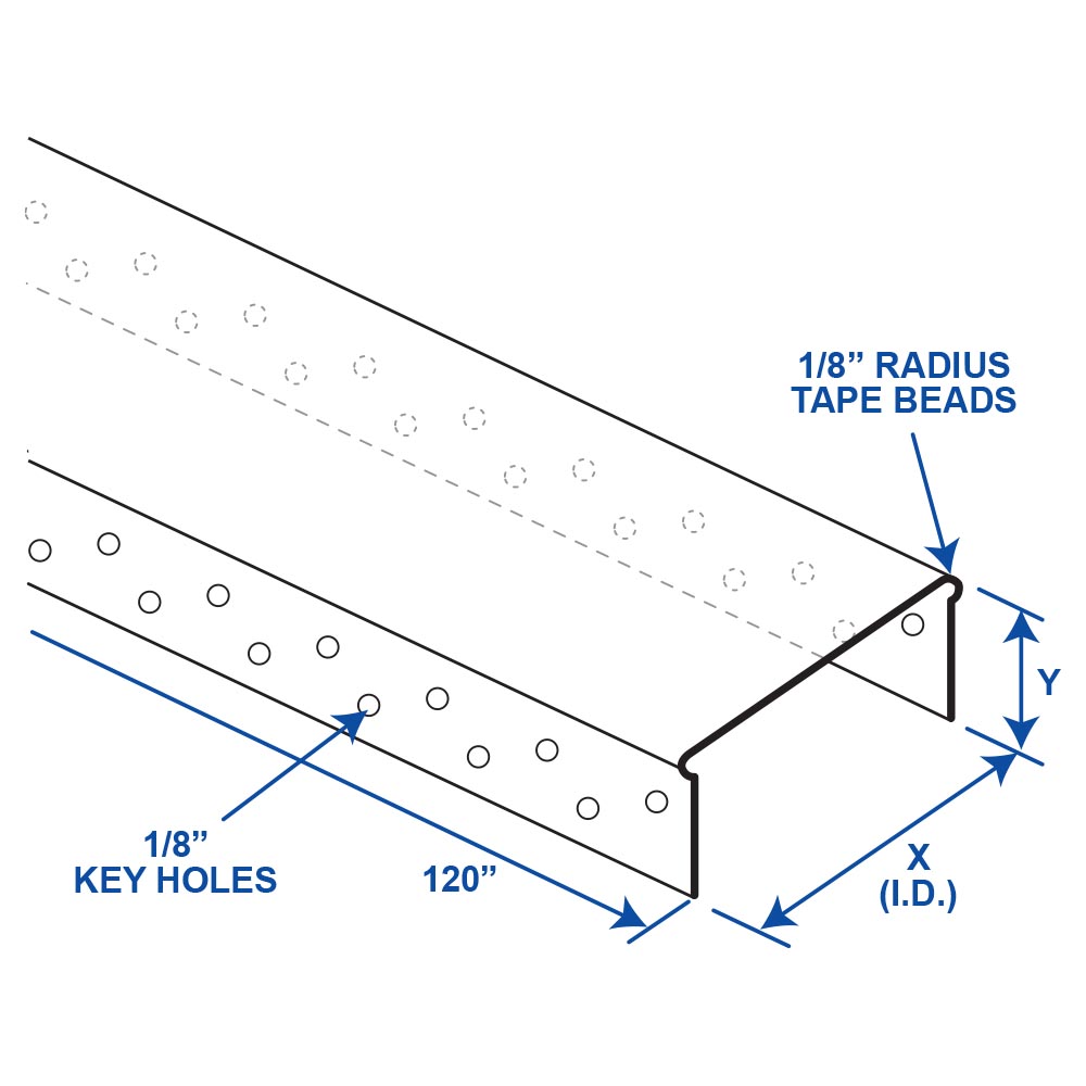 The Deluxe End Cap With Tapeable Flange is used as an end cap to finish off partition walls. Standard length is 10 foot. The ECX End Cap has optional holes in the taping flange for keying the drywall mud.