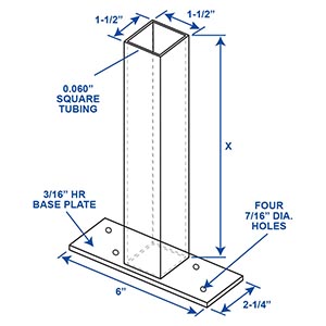 - 2 1/4" x 6" Retangle Base (3/16" HR Base Plate)