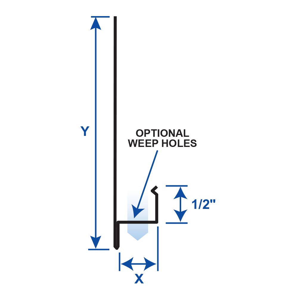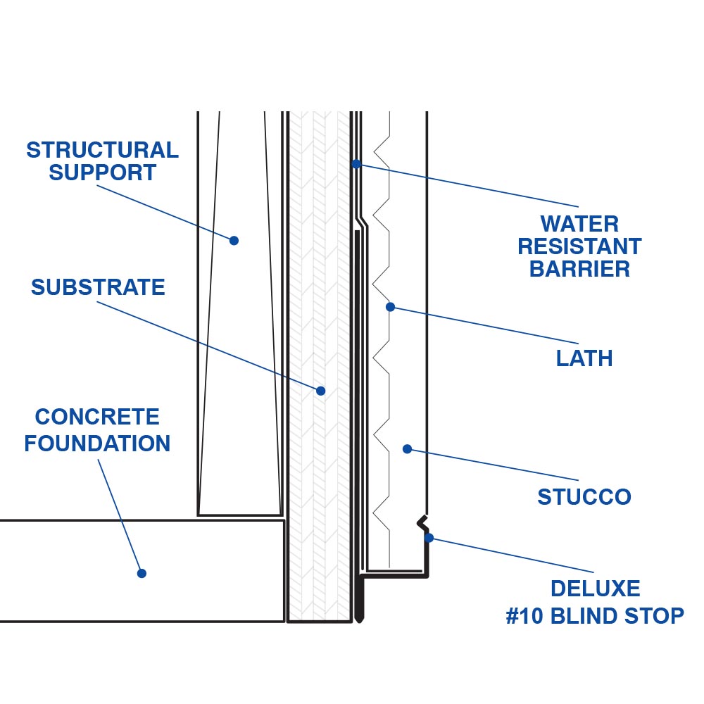 The Deluxe #10 Blind Stop is a plaster stop that terminates the stucco at the base of walls or at the fascia, or fascia/soffit conditions. Also provides a drip edge and has weep holes.