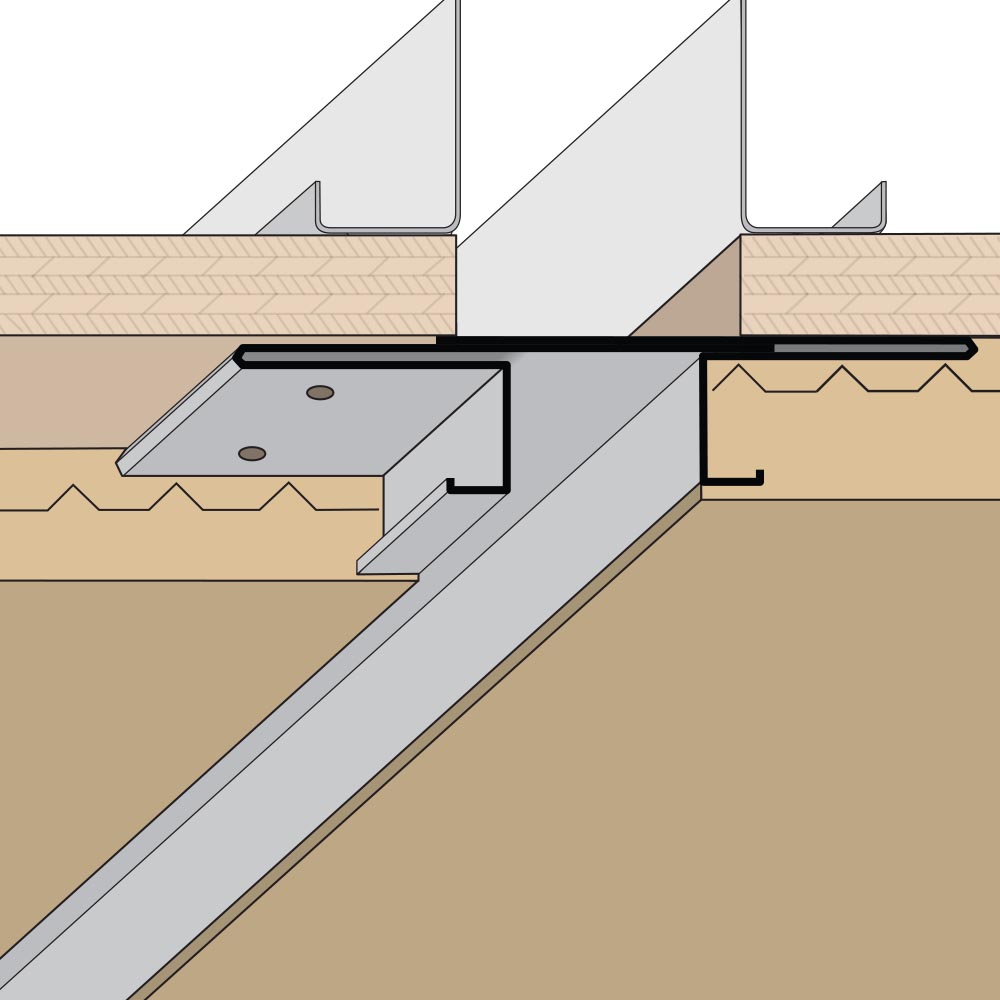 The Deluxe #40 Expansion Joint has an unique hem design to stop moisture penetration in a horizontal condition. The two-piece design allows for movement.