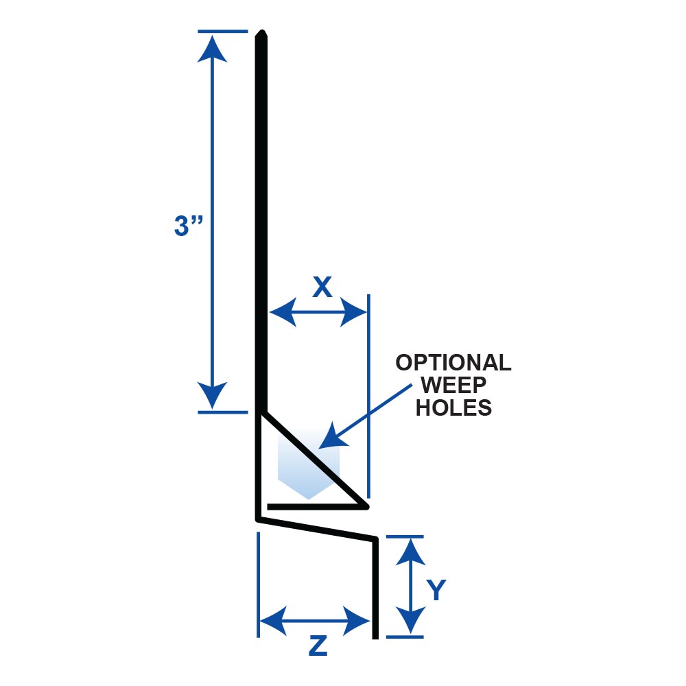 The Deluxe 3 Stucco Screed Flashing combines a stucco screed and head flashing into one uniformed piece. Weep screed allows moisture to escape and travel over top of flashing. The Deluxe 3 Stucco Screed Flashing provides ideal water management at window head, floor line and transition to dissimilar materials. Available with and without weep holes.
